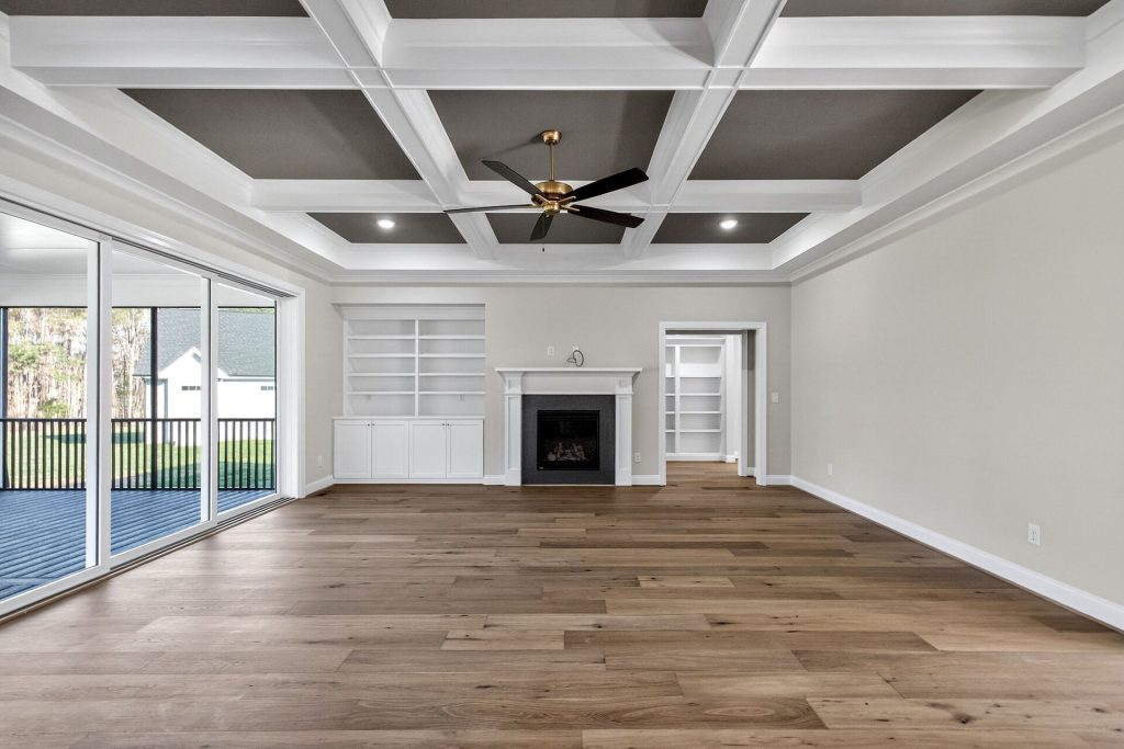 Step into the heart of this stunning, move-in ready home at 85 Old Garden Lane in Youngsville’s Tarborough Ridge—where comfort meets craftsmanship. This beautifully designed family room is made for everyday living and unforgettable gatherings. From the elegant coffered ceiling and cozy gas fireplace to the custom built-ins and natural light pouring in from expansive sliding doors, every detail invites you to relax and stay awhile. With 3,540 sq ft, 4 bedrooms, and 4.5 baths, this home offers the perfect balance of open-concept living and refined design—all set on a spacious homesite in one of Youngsville’s premier communities.